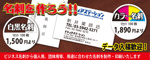 手書きでも、ワープロでも名刺のアイディア、デザインレイアウト、記載する情報、ロゴ等をお持ちください。