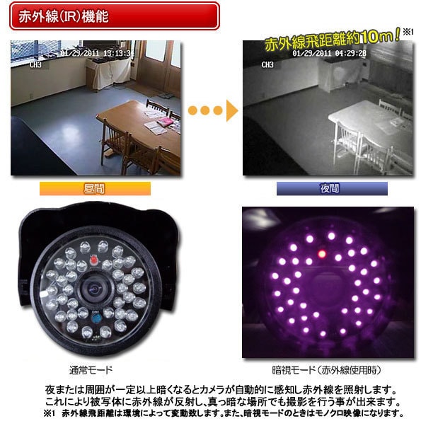 | 最大赤外線飛距離 | 1台設置の場合:約80m(環境により変動あり) |